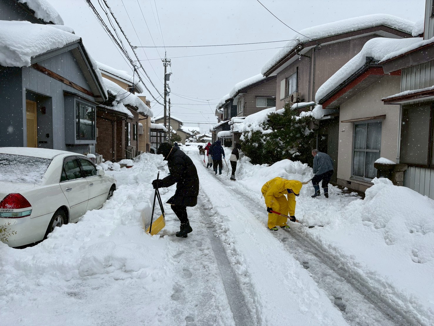 【2026年1月25日】通学路の除雪作業 投稿日:2026.01.27 投稿日:2026.01.27 / 子供会育成会、新青会、活動の記録、自治会活動、集会場運営委員会 積雪により通学路の安全確保が困難な状況となってことにより、自治会内にある通学路の除雪を行いました。 除雪作業前の打ち合わせにて、子供会と各ブロック長・新青会が中心に除雪する通学路の確認が行われました。 多くの自治会会員の方が除雪にご協力を頂きました! ご協力頂いた皆様、ありがとうございました!